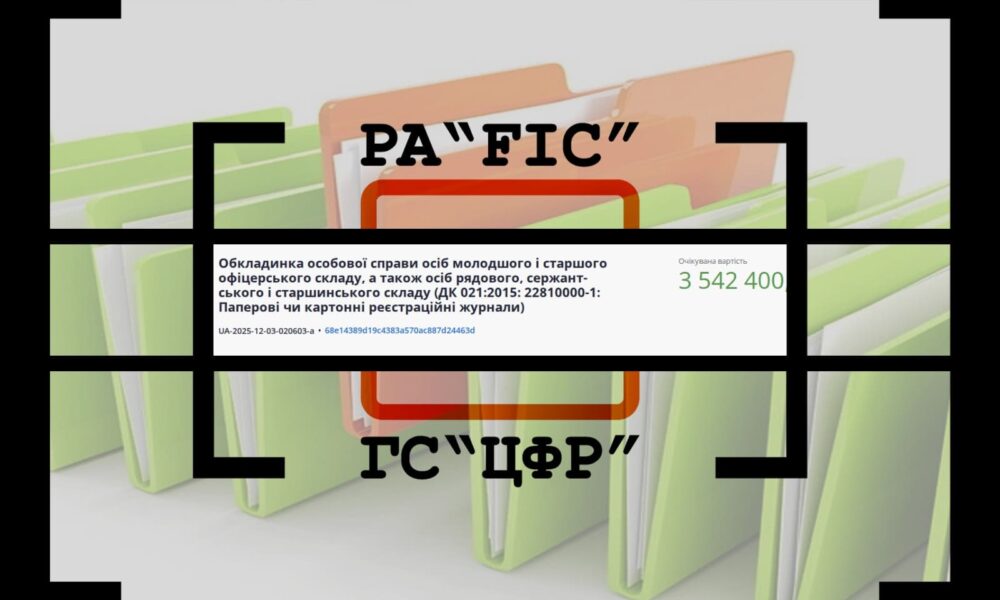 12 грудня Державне підприємство Міністерства оборони України “Державний оператор тилу” провело закупівлю на обкладинки для особових справ осіб молодшого і старшого офіцерського складу, а також осіб...