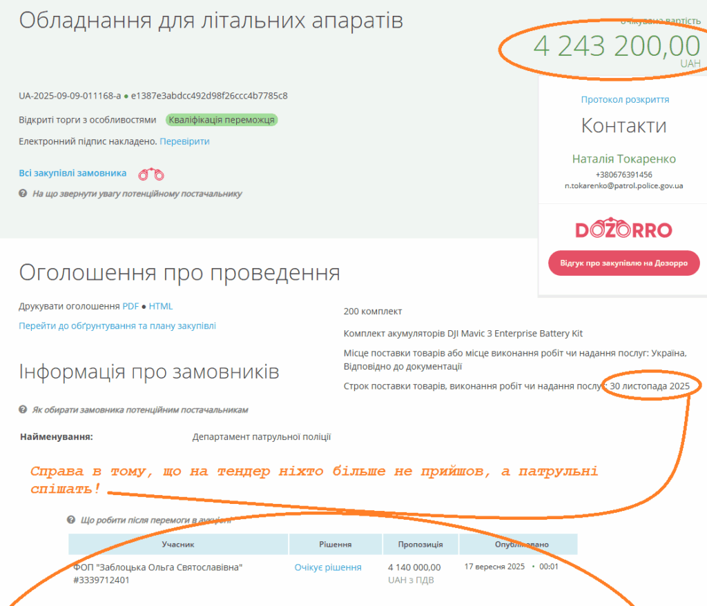 Для нас, наприклад, стала несподіванкою закупівля батарей до “мавіків” Патрульною поліцією.