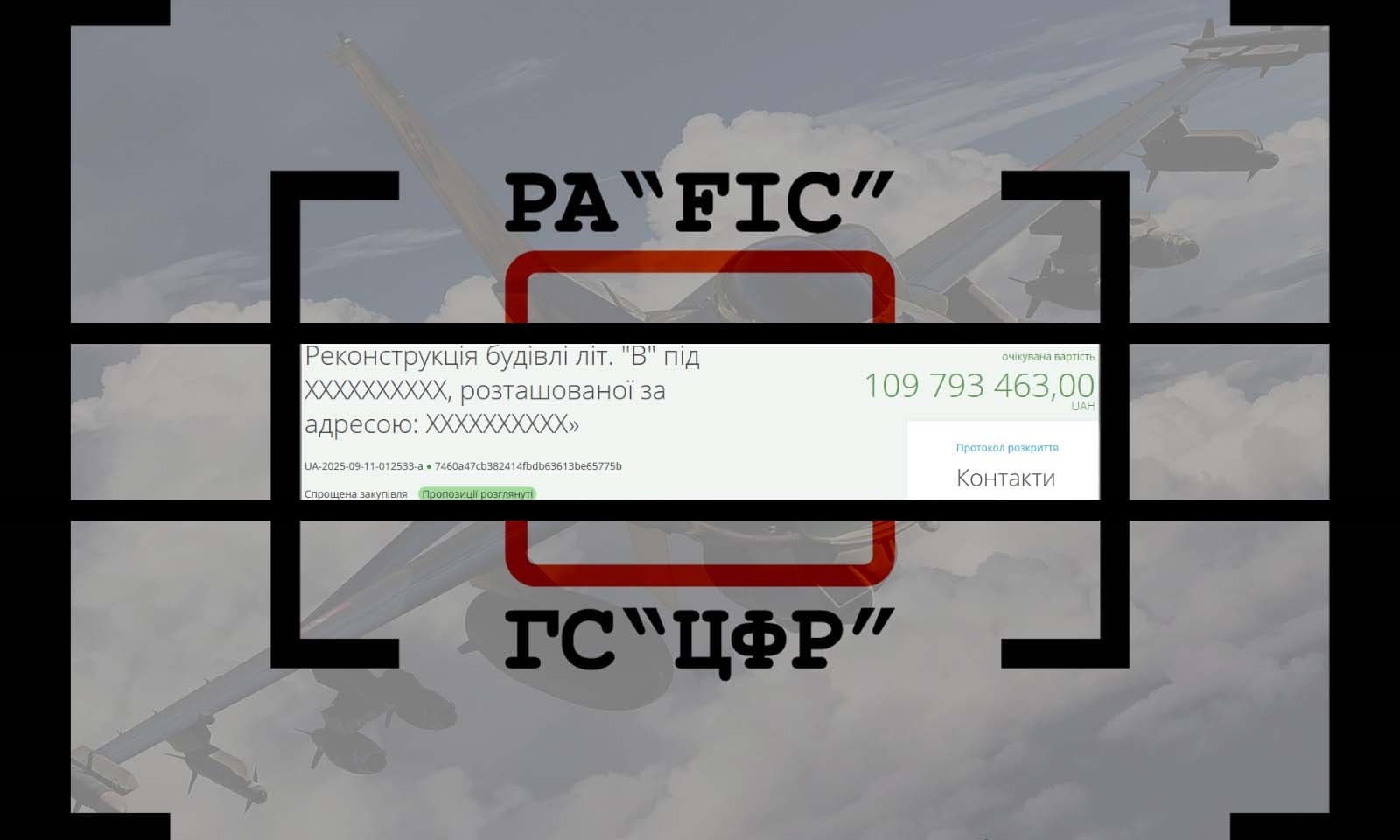 25 вересня Кременчуцький льотний коледж Харківського національного університету внутрішніх справ провів закупівлю на реконструкцію будівлі літ. “В” під ХХХХХХХХХХ, розташованої за адресою: ХХХХХХХХХХ, очікуваною вартістю у 109 793 463 гривні.