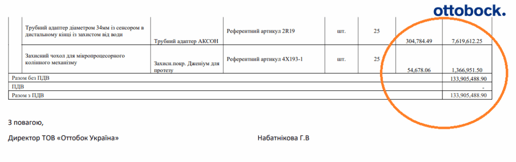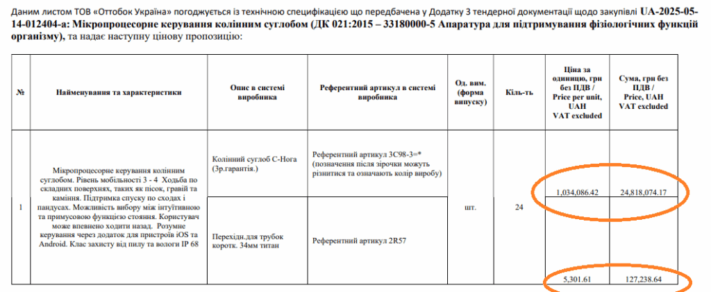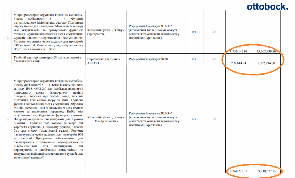 24 травня Комунальне некомерційне підприємство “Львівське територіальне медичне об’єднання “Багатопрофільна клінічна лікарня інтенсивних методів лікування та швидкої медичної допомоги” провело закупівлю на мікропороцесорне керування колінним суглобом. Очікувана вартість 69 штук оцінили у 133 905 490 гривень (кошти від господарської діяльності підприємства).