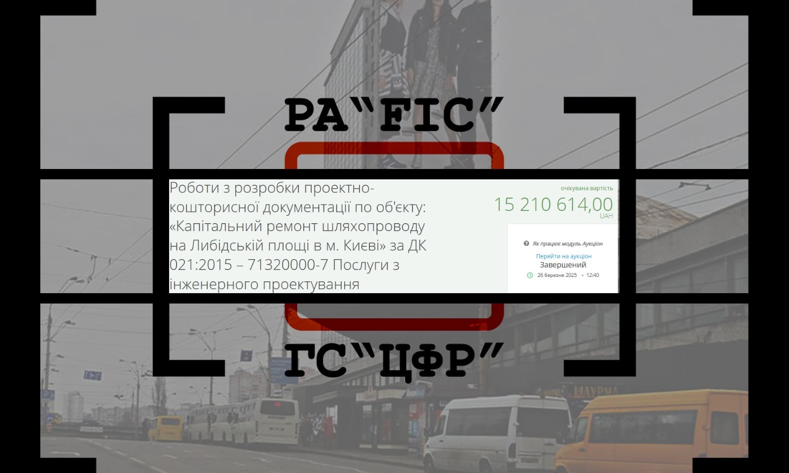 26 березня Комунальна корпорація “Київавтодор” провела закупівлю на роботи з розробки проектно-кошторисної документації по об’єкту: “Капітальний ремонт шляхопроводу на Либідській площі в м. Києві”. Очікувана вартість робіт склала 15 210 614 гривень.