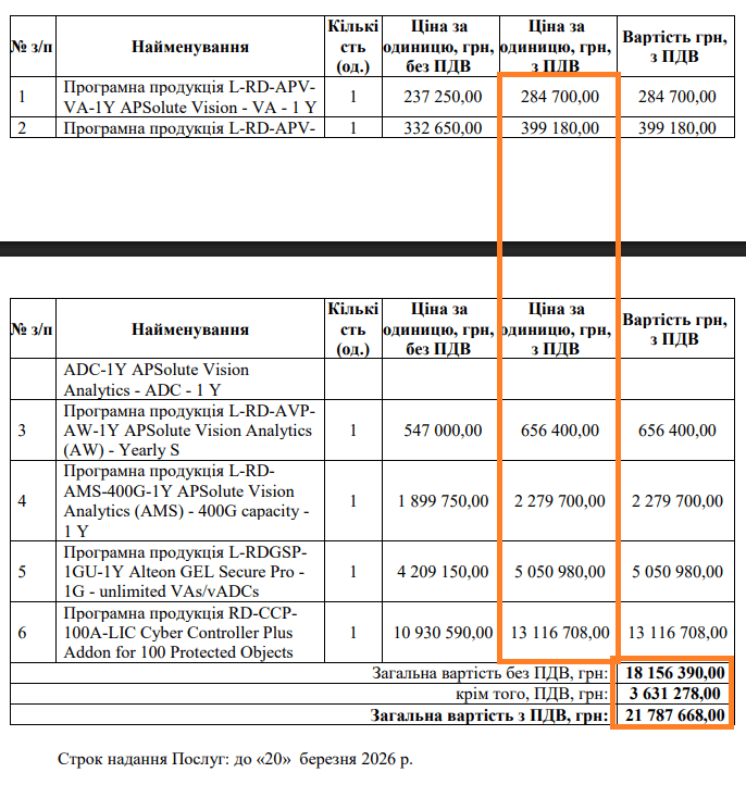 На торгах змагались два учасники, переміг ТОВ “СИД-ІТ” з пропозицією у 19 802 268 гривень.