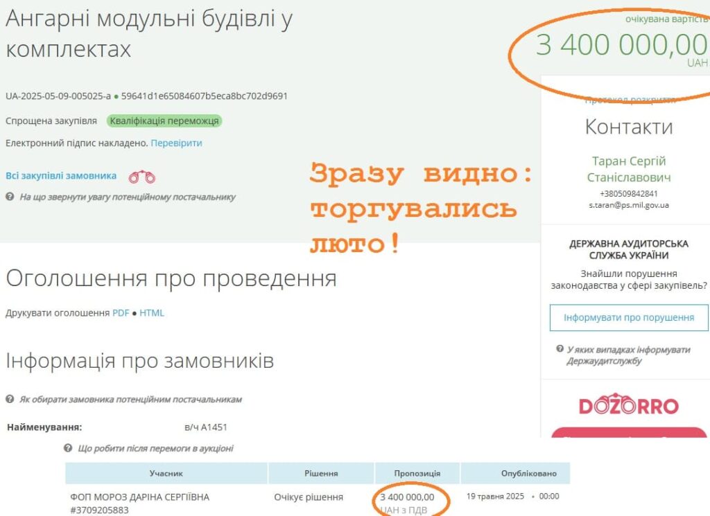 На торгах переміг ФОП МОРОЗ ДАРІНА СЕРГІЇВНА з пропозицією у 3 400 000 гривень. Отаке “попадання в десяточку”.