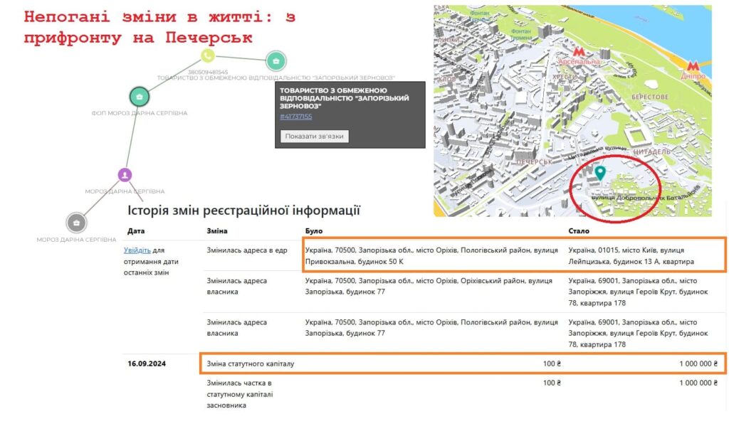 “ЗАПОРІЗЬКИЙ ЗЕРНОВОЗ”, як і ряд деяких компаній належать Сергію Морозову. Сергій Морозов, і “Сергіївна Морозова” мають ще й по ФОПу на одній квартирі в м. Оріхів.