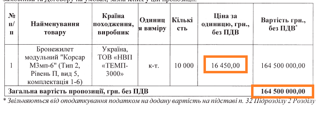 13 лютого ГОЛОВНИЙ ЦЕНТР КАПІТАЛЬНОГО БУДІВНИЦТВА, РЕКОНСТРУКЦІЇ ТА ЗАКУПІВЕЛЬ ДЕРЖАВНОЇ ПРИКОРДОННОЇ СЛУЖБИ УКРАЇНИ провів закупівлю на модульні бронежилети. Очікувана вартість 10 000 комплектів склала 250 000 000 гривень.