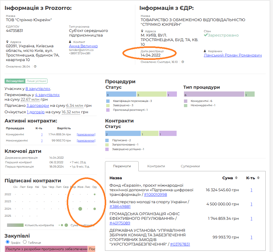 ТОВ існує з 2022 року, має 3 договори на 6 мільйонів гривень.