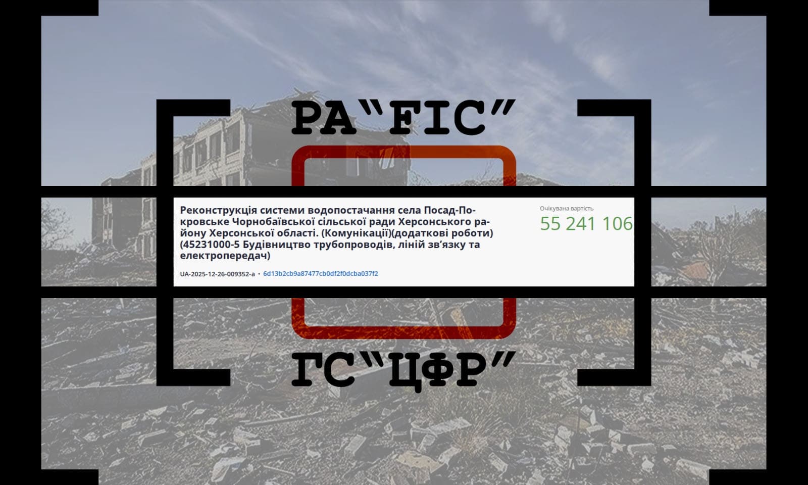 26 грудня СЛУЖБА ВІДНОВЛЕННЯ ТА РОЗВИТКУ ІНФРАСТРУКТУРИ У ХЕРСОНСЬКІЙ ОБЛАСТІ провела закупівлю без відкритих торгів на реконструкцію системи водопостачання села Посад-Покровське Чорнобаївської сільської ради Херсонського району Херсонської області. (Комунікації)(додаткові роботи).