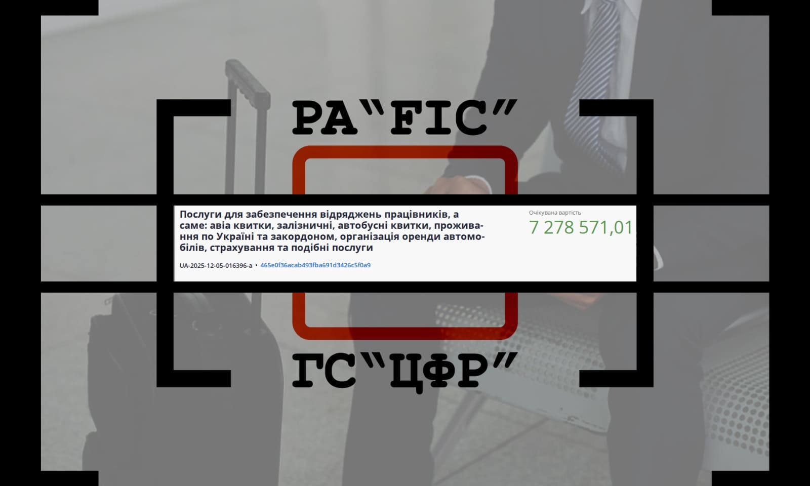 15 грудня ДЕРЖАВНЕ ПІДПРИЄМСТВО МІНІСТЕРСТВА ОБОРОНИ УКРАЇНИ “АГЕНЦІЯ ОБОРОННИХ ЗАКУПІВЕЛЬ” провело закупівлю на послуги для забезпечення відряджень працівників, а саме: авіа квитки, залізничні, автобусні квитки, проживання по Україні та закордоном, організація оренди автомобілів, страхування та подібні послуги.