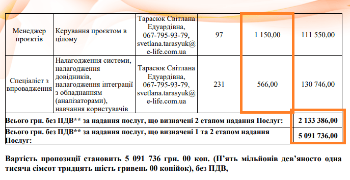 А 16 квітня за 3 667 114,19 гривні провели торги на послуги з доопрацювання інформаційно-аналітичної системи “Менеджмент послуг в сфері протидії соціально небезпечним захворюванням”. На торгах змагались два учасники. Найкращою була пропозиція від ТОВу “Девпрув”: 3 640 480 гривень. Однак, щоб отримати контракт, цей учасник має усунути невідповідності, інакше контракт перейде до іншого учасника – ТОВу “ІЛАЙФ”.