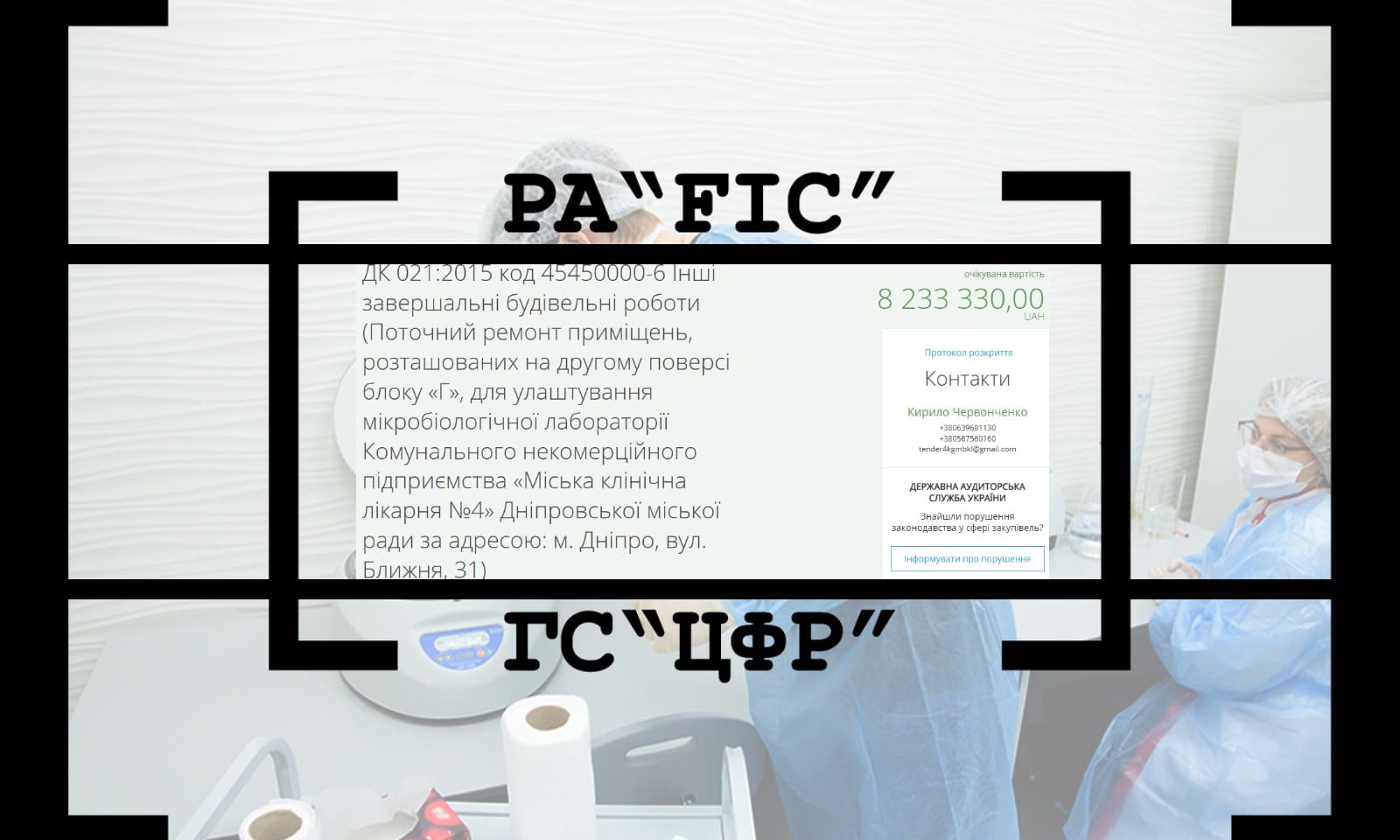 30 листопада КОМУНАЛЬНЕ НЕКОМЕРЦІЙНЕ ПІДПРИЄМСТВО “МІСЬКА КЛІНІЧНА ЛІКАРНЯ № 4” ДНІПРОВСЬКОЇ МІСЬКОЇ РАДИ провело закупівлю на поточний ремонт приміщень, розташованих на другому поверсі блоку “Г”, для улаштування мікробіологічної лабораторії. Очікувана вартість закупівлі склала 8 233 330 гривень (кошти НСЗУ).