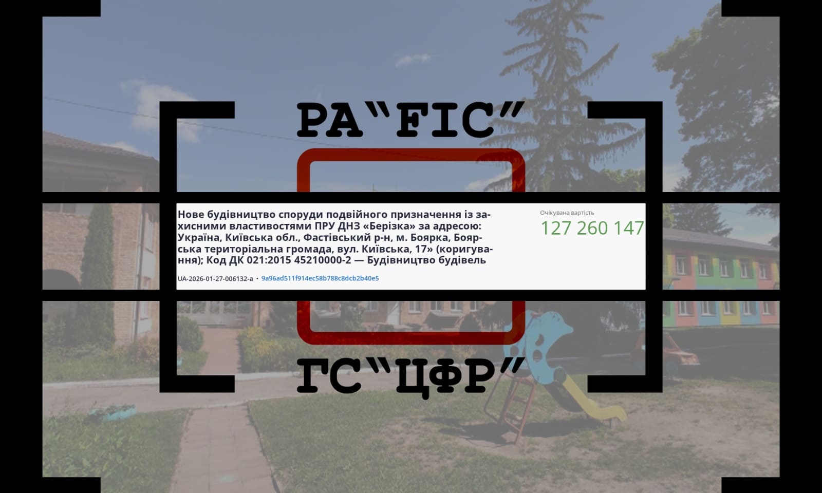 16 березня УПРАВЛІННЯ КАПІТАЛЬНОГО БУДІВНИЦТВА БОЯРСЬКОЇ МІСЬКОЇ РАДИ провело закупівлю на нове будівництво споруди подвійного призначення із захисними властивостями ПРУ ДНЗ “Берізка” за адресою: Україна, Київська обл., Фастівський р-н, м. Боярка, вул. Київська, 17.