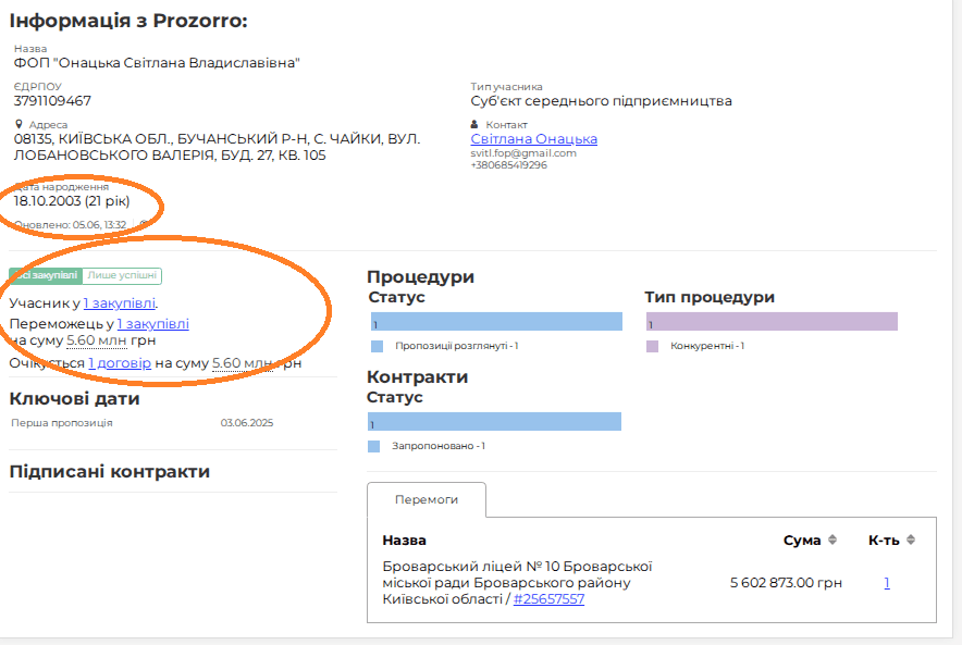 На торгах переміг єдиний учасник, ФОП “Онацька Світлана Владиславівна” з пропозицією у 5 602 873 гривні.