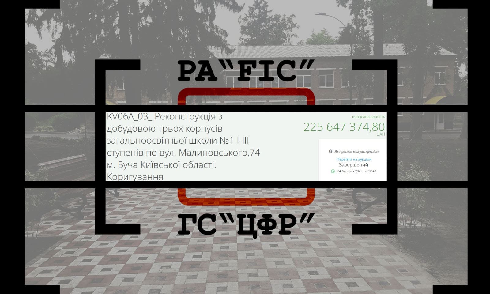 4 березня Відділ освіти Бучанської міської ради провів закупівлю на реконструкцію з добудовою трьох корпусів загальноосвітньої школи №1 І-ІІІ ступенів по вул. Малиновського,74.