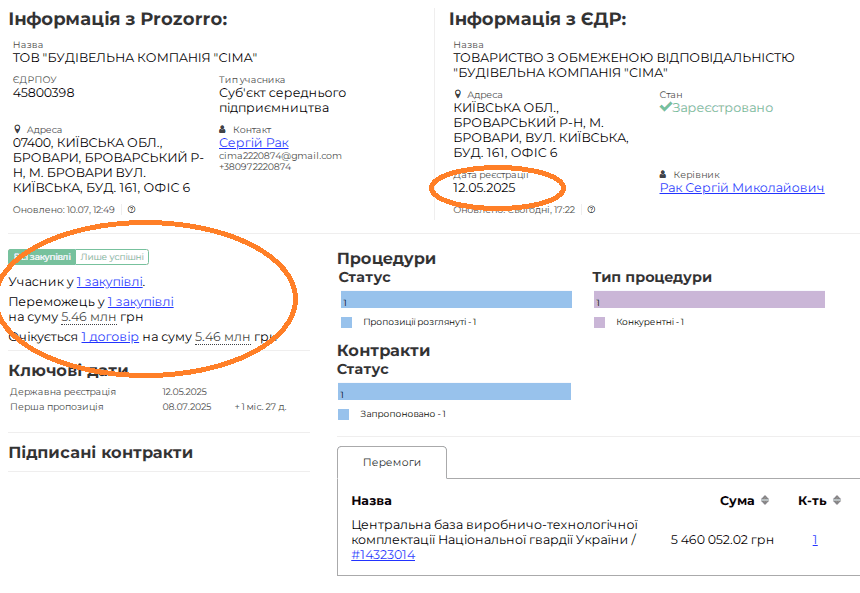 ТОВ з’явився 12 травня 2025 року. Досі не мав контрактів у Prozorro.