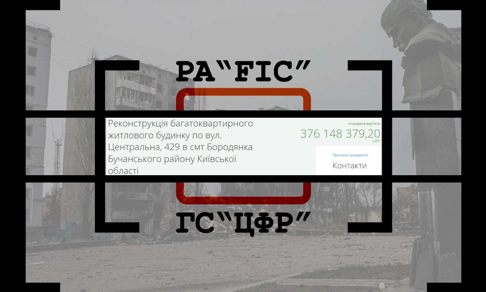 20 червня Департамент регіонального розвитку Київської обласної державної адміністрації провів закупівлю на реконструкцію багатоквартирного житлового будинку по вул. Центральна, 429 в смт Бородянка Бучанського району Київської області.