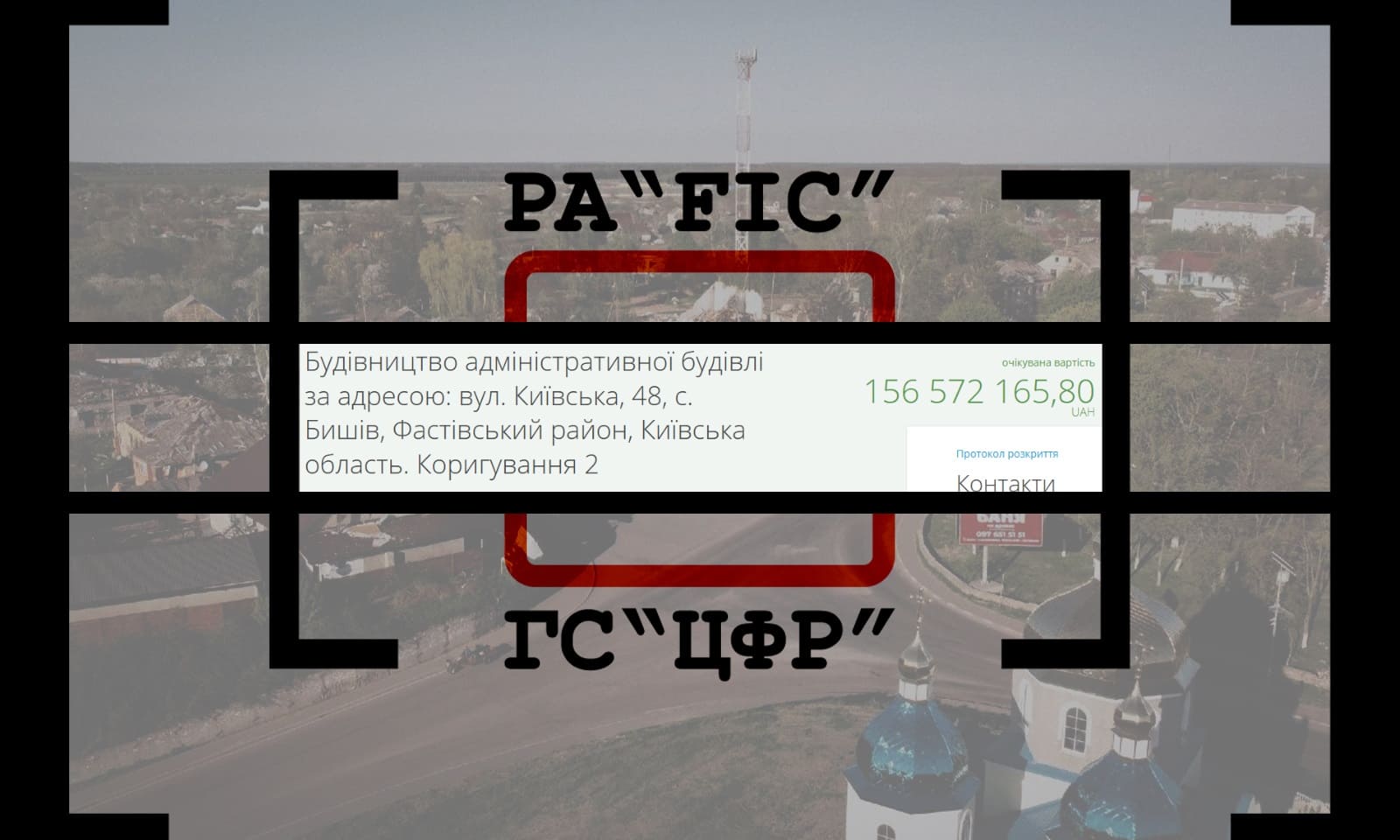 11 червня Департамент регіонального розвитку Київської обласної державної адміністрації провів закупівлю на будівництво адміністративної будівлі за адресою: вул. Київська, 48, с. Бишів, Фастівський район, Київська область. Коригування 2.