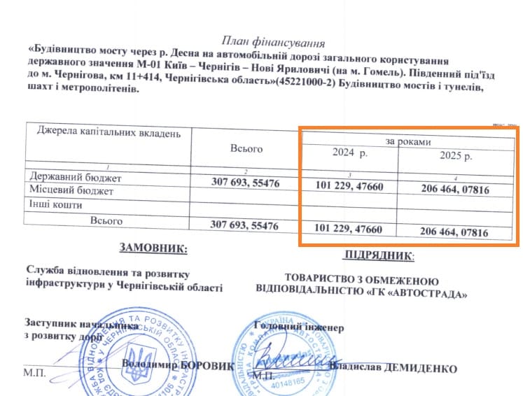 19 грудня Служба відновлення та розвитку інфраструктури у Чернігівській області провела закупівлю без відкритих торгів на будівництво мосту через р. Десна на автомобільній дорозі загального користування державного значення М-01 Київ – Чернігів – Нові Яриловичі (на м. Гомель). Південний під’їзд до м. Чернігова, км 11+414, Чернігівська область.