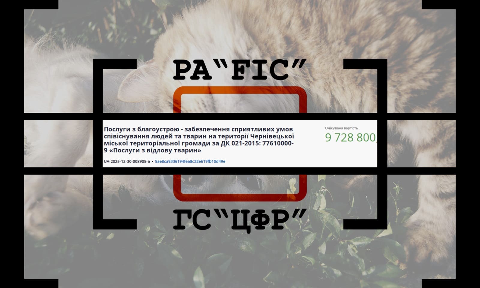7 січня Департамент транспорту та окремих питань комунального господарства Чернівецької міської ради провів закупівлю на послуги забезпечення сприятливих умов співіснування людей та тварин на території Чернівецької міської територіальної громади (Послуги з відлову тварин).