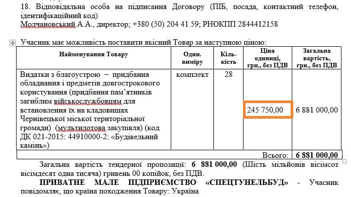 2 лютого Департамент транспорту та окремих питань комунального господарства Чернівецької міської ради провів закупівлю на придбання пам’ятників загиблим військослужбовцям для встановлення їх на кладовищах Чернівецької міської територіальної громади. Очікувана вартість закупівлі склала 20 643 000 гривень.