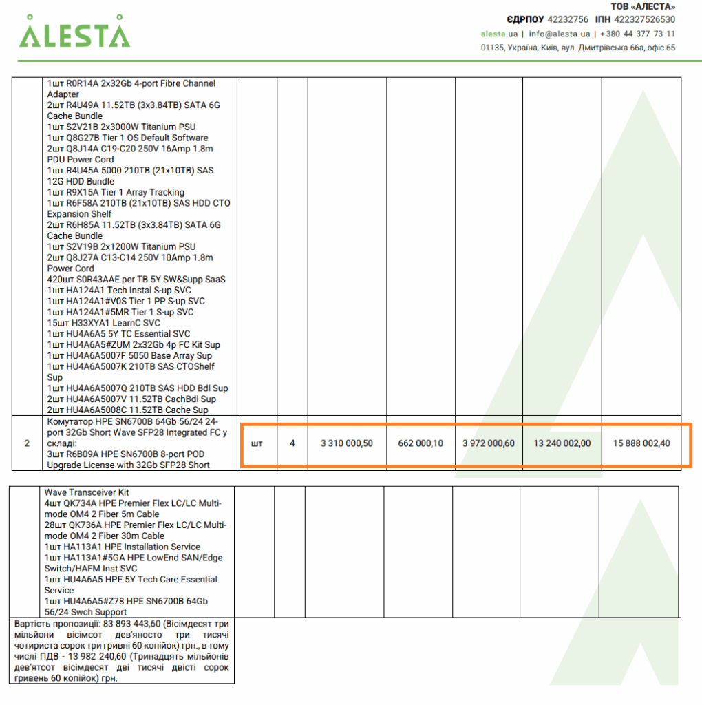 16 грудня ДЕРЖАВНА СУДОВА АДМІНІСТРАЦІЯ УКРАЇНИ провела закупівлю на системи збереження даних та комплекти обладнання для побудови мережі даних, очікуваною вартістю у 85 980 200,2 гривні. За ці кошти планують придбати два сервери та 4 комутатори.