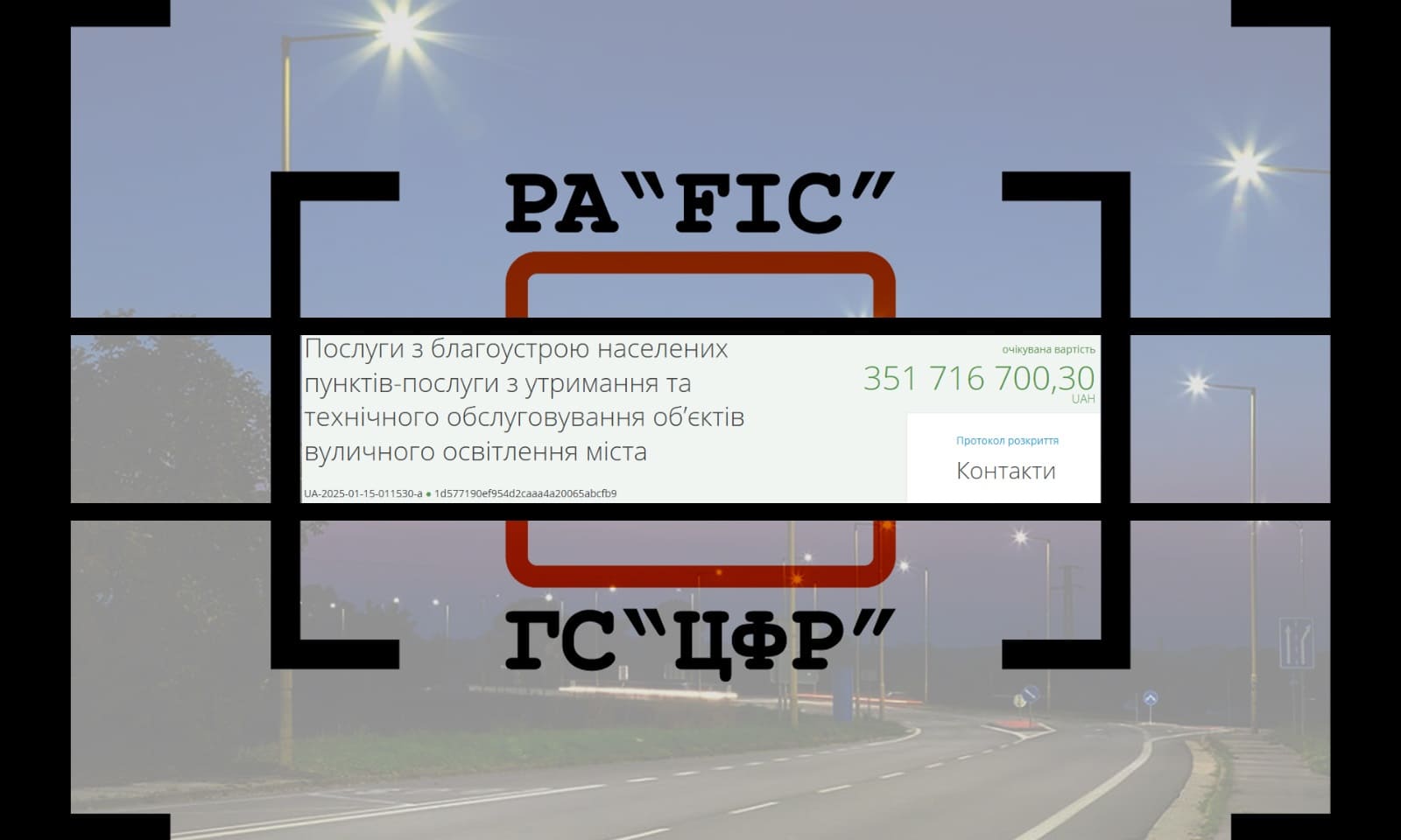 провів закупівлю на послуги з благоустрою населених пунктів – послуги з утримання та технічного обслуговування об’єктів вуличного освітлення міста. Очікувана вартість закупівлі склала 351 716 700,3 гривні.
