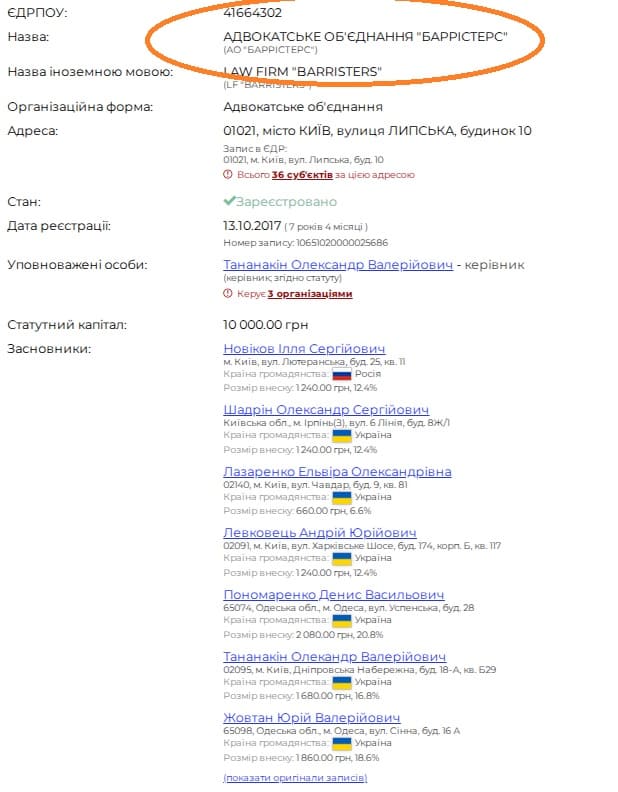 У всіх випадках контракт підписали з АДВОКАТСЬКИМ ОБ’ЄДНАННЯМ “БАРРІСТЕРС”.