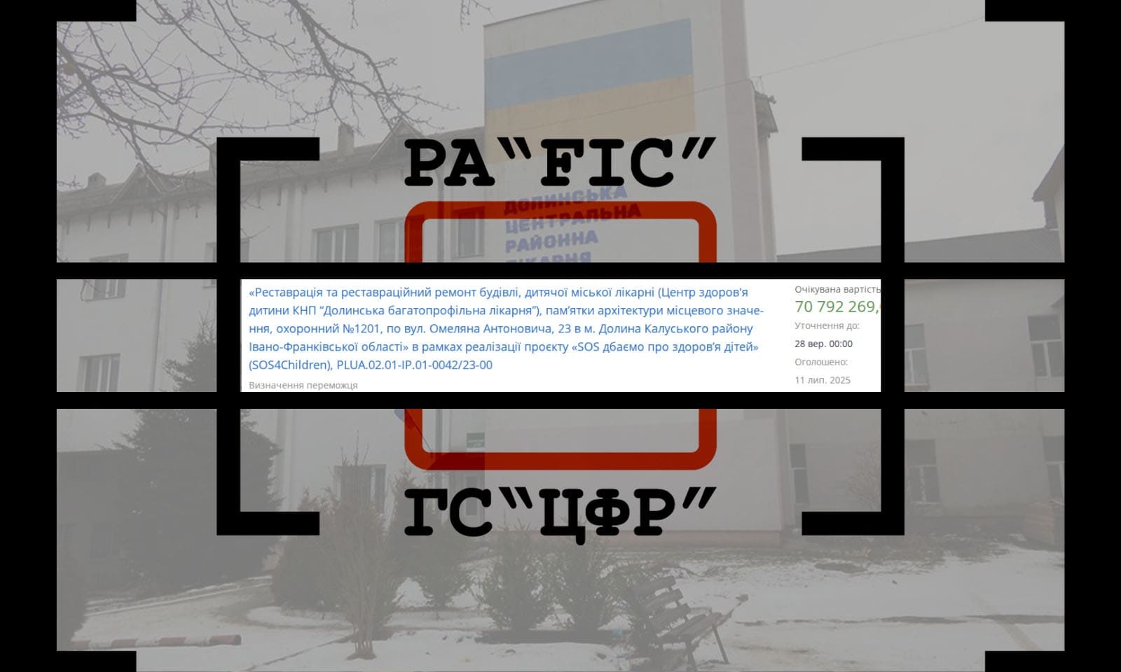 1 жовтня Долинська міська рада провела закупівлю на реставрацію та реставраційний ремонт будівлі, дитячої міської лікарні (Центр здоров’я дитини КНП “Долинська багатопрофільна лікарня”), памʼятки архітектури місцевого значення, охоронний №1201, по вул. Омеляна Антоновича, 23 в м. Долина Калуського району Івано-Франківської області» в рамках реалізації проєкту “SOS дбаємо про здоров’я дітей” (SOS4Children), PLUA.02.01-IP.01-0042/23-00.