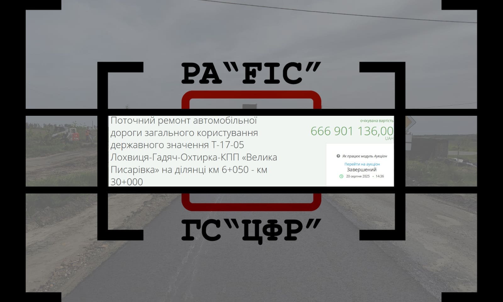 Ще за 666 901 136 гривень провели закупівлю на поточний ремонт автомобільної дороги загального користування державного значення Т-17-05 Лохвиця-Гадяч-Охтирка-КПП “Велика Писарівка” на ділянці км 6+050 – км 30+000. На торгах змагались два учасники, переміг ТОВ “ЕНЕРГЕТИЧНО – ДОРОЖНЄ БУДІВНИЦТВО” з пропозицією у 655 019 114,69 гривні.