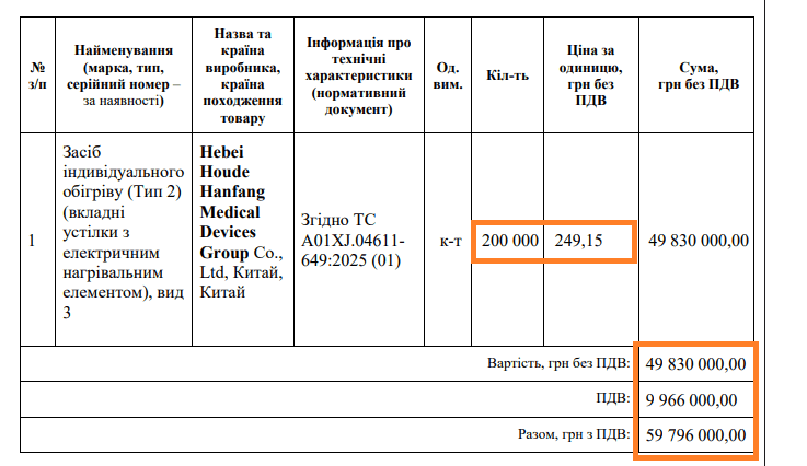 На 200 000 комплектів очікують до 31 жовтня 2025 року.