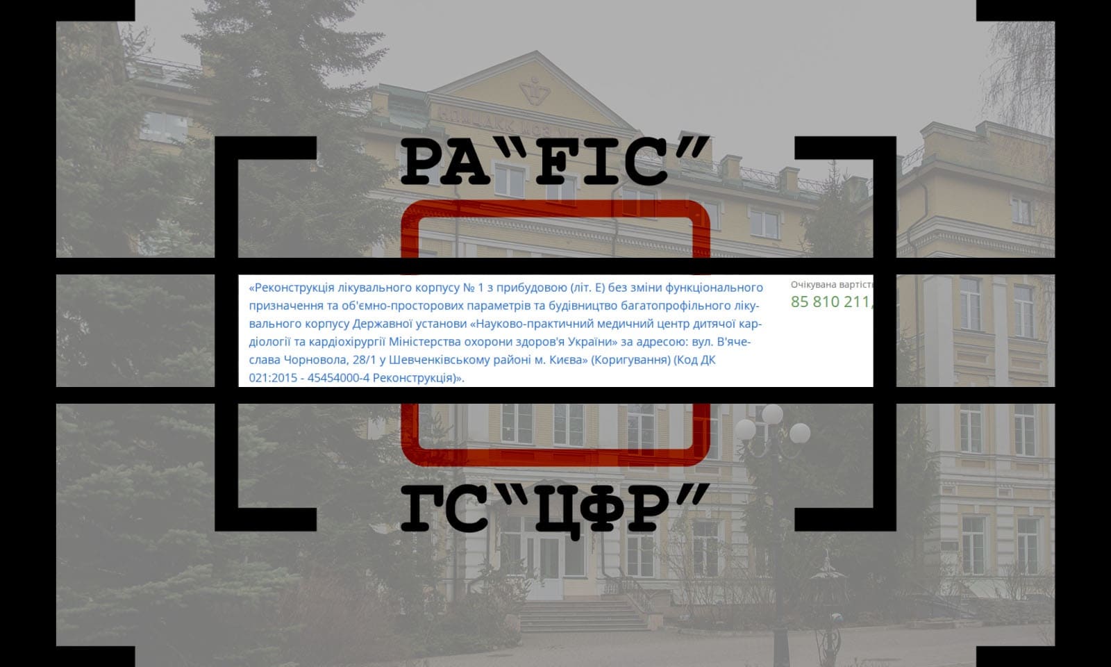 26 вересня ДЕРЖАВНА УСТАНОВА “НАУКОВО-ПРАКТИЧНИЙ МЕДИЧНИЙ ЦЕНТР ДИТЯЧОЇ КАРДІОЛОГІЇ ТА КАРДІОХІРУРГІЇ МІНІСТЕРСТВА ОХОРОНИ ЗДОРОВ’Я УКРАЇНИ” провів закупівлю без використання електронної системи на реконструкцію лікувального корпусу № 1 з прибудовою (літ. Е) без зміни функціонального призначення та об’ємно-просторових параметрів та будівництво багатопрофільного лікувального корпусу.