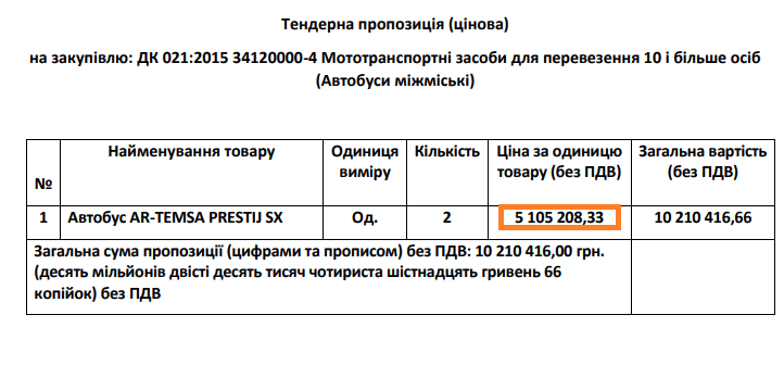 На торгах переміг єдиний учасник, ТОВ “АВТО-РЕГІОН”, з пропозицією у 10 210 416,66 гривні.