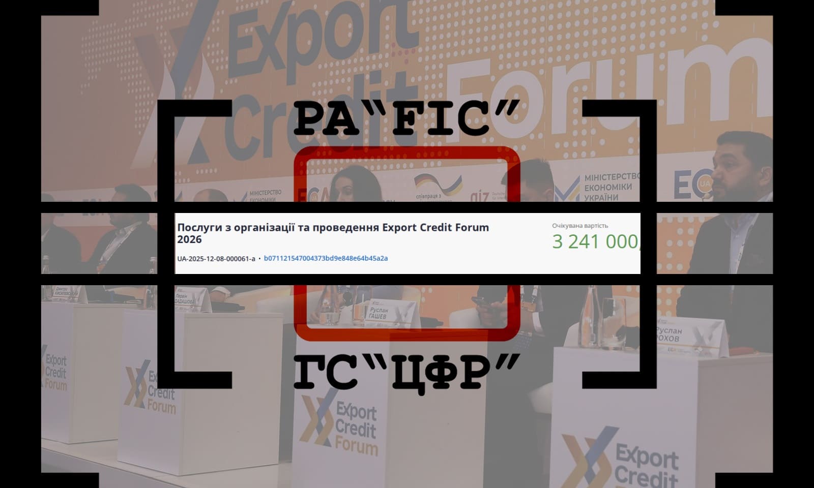16 грудня ПРИВАТНЕ АКЦІОНЕРНЕ ТОВАРИСТВО “ЕКСПОРТНО-КРЕДИТНЕ АГЕНТСТВО” провело закупівлю на послуги з організації та проведення Export Credit Forum 2026. Очікувана вартість закупівлі склала 3 241 000 гривень (кошти від господарської діяльності підприємства).