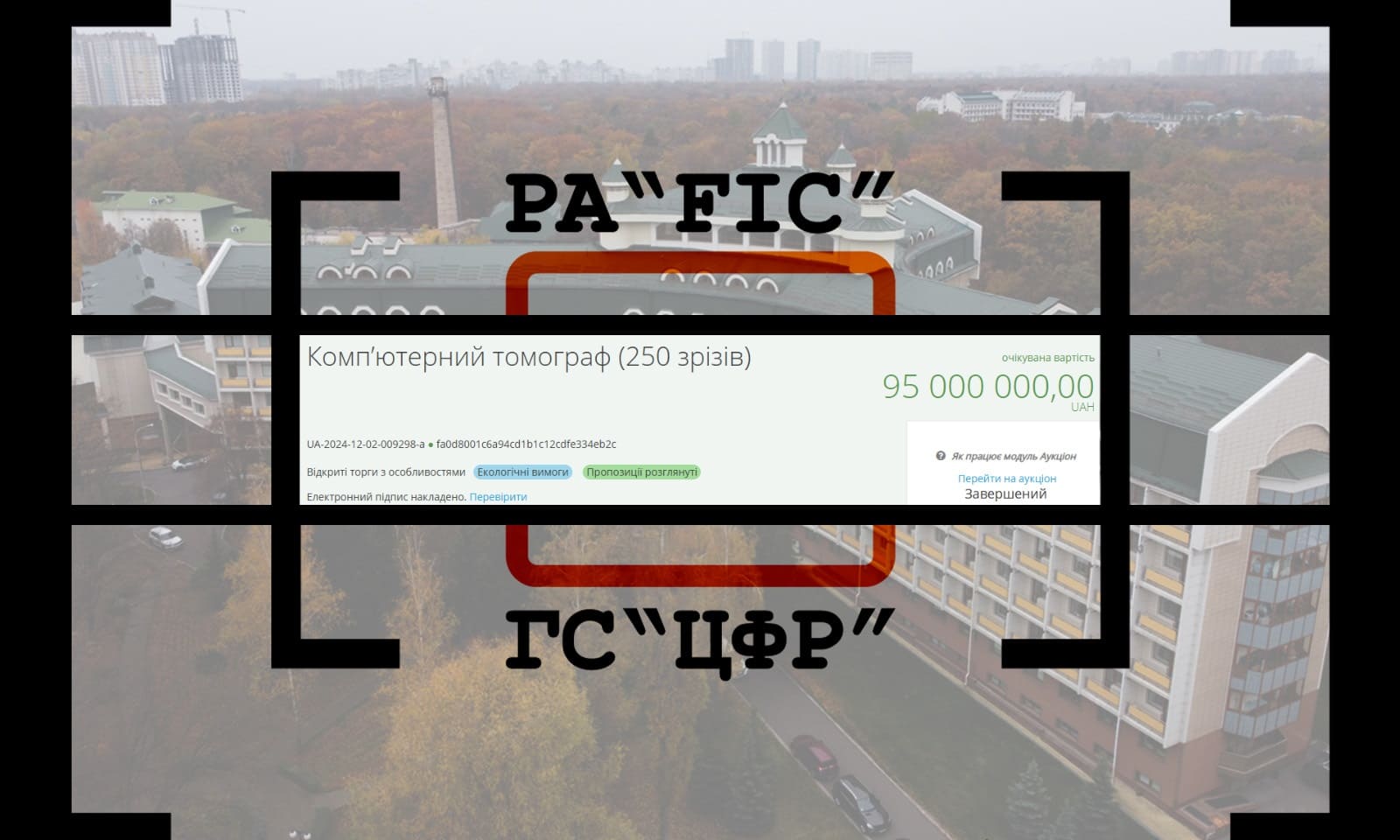 12 грудня Клінічна лікарня “Феофанія” Державного управління справами провела закупівлю комп’ютерного томографа (250 зрізів). Очікувана вартість закупівлі склала 95 000 000 гривень (державний бюджет).