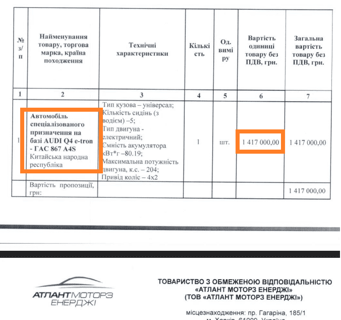 Переможцем у обох лотах (на 7 та 1 авто) став ТОВ “АТЛАНТ МОТОРЗ ЕНЕРДЖІ”.