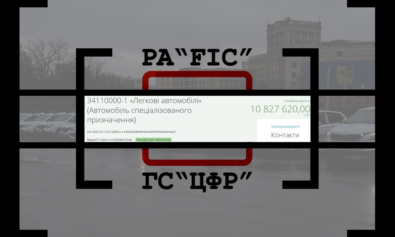 24 квітня ГУНП в Київській області провів закупівлю на автомобілі спеціалізованого призначення, очікуваною вартістю у 10 827 620 гривень. 8 автівок купували двома лотами.