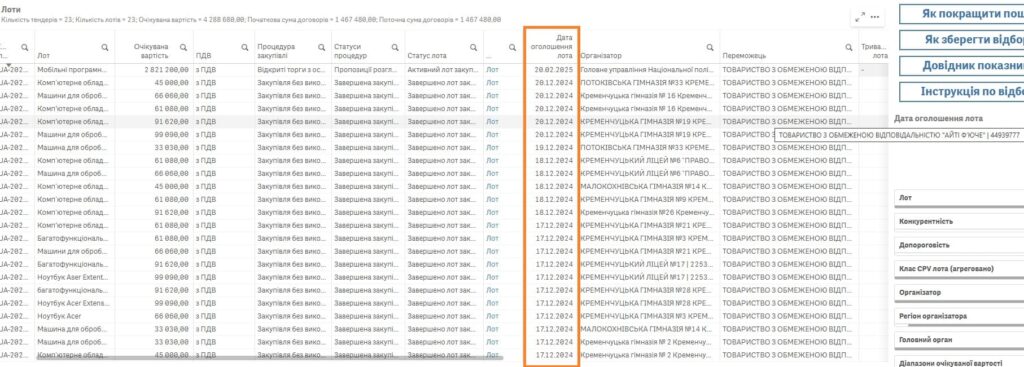 На торгах переміг єдиний учасник, ТОВ “АЙТІ Ф’ЮЧЕ” з пропозицією у 4 391 894,4 гривні.