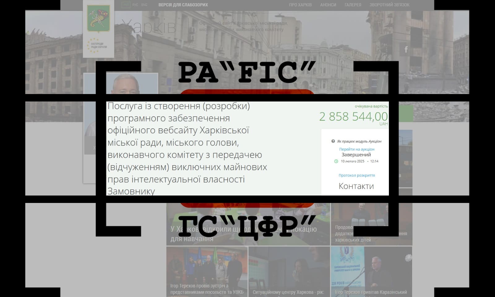 10 лютого Харківська міська рада провела закупівлю на послуги із створення (розробки) програмного забезпечення офіційного вебсайту Харківської міської ради, міського голови, виконавчого комітету з передачею (відчуженням) виключних майнових прав інтелектуальної власності Замовнику.