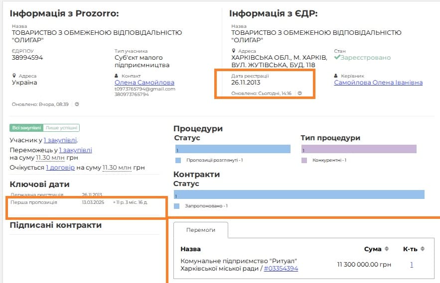 ТОВ існує з 2013 року, але цей договір стане його першою участю та першою перемогою у системі Prozorro.