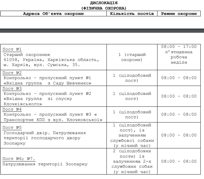 23 січня Комунальна організація “Харківський зоологічний парк” провів закупівлю на комплексне надання охоронних послуг бюджетом у 6 364 520 гривень (місцевий бюджет).