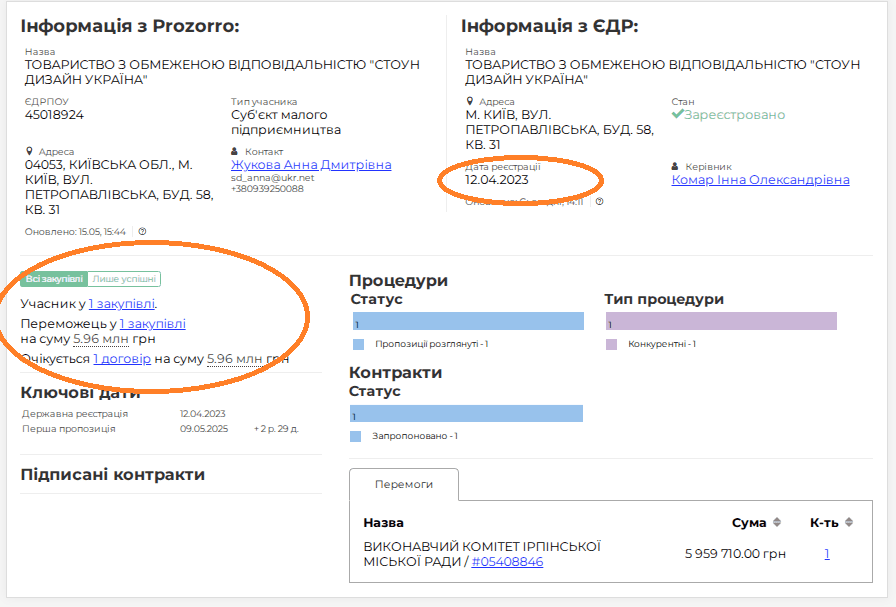 ТОВ існує з 2023 року, ця закупівля буде для нього першою в системі Prozorro.