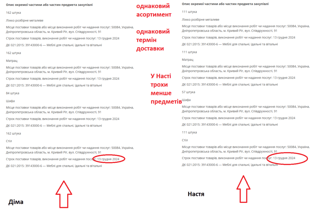 За умовами закупівлі, переможцю треба довезти у Кривий Ріг до 13 грудня: 84 шафи, 162 столи, 162 матраци та 162 металевих ліжок.