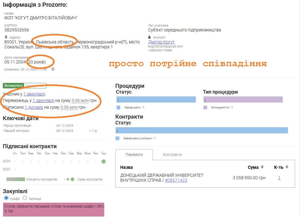 Так, ФОП знову з Львівщини, йому знову 20 років, і так, він досі ніколи не ходив на торги у Prozorro.