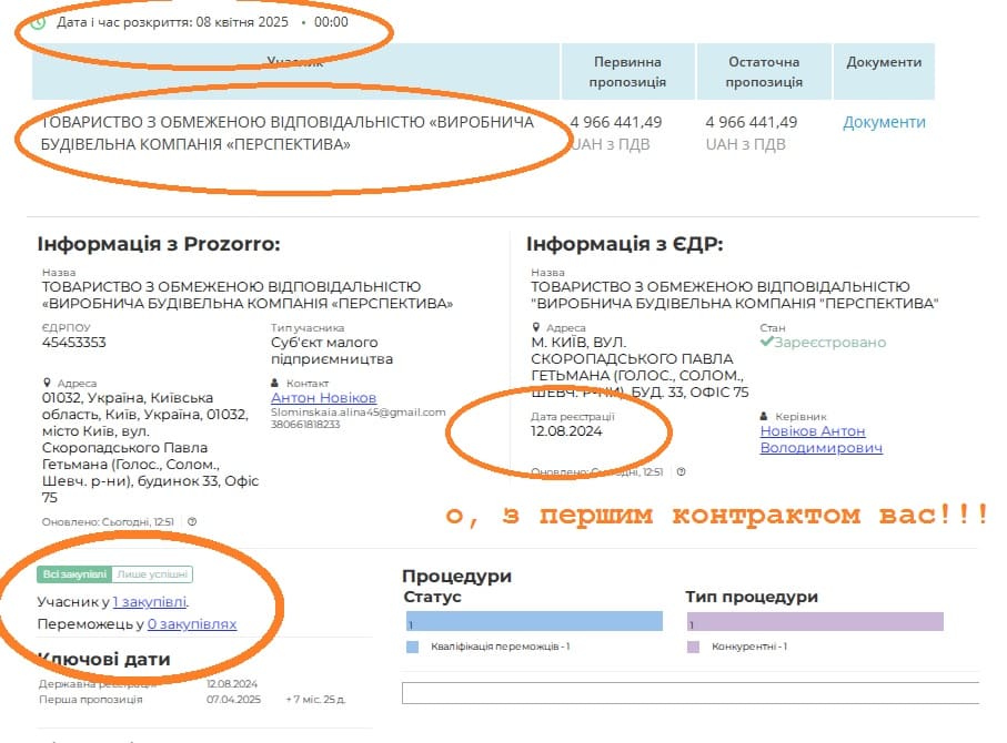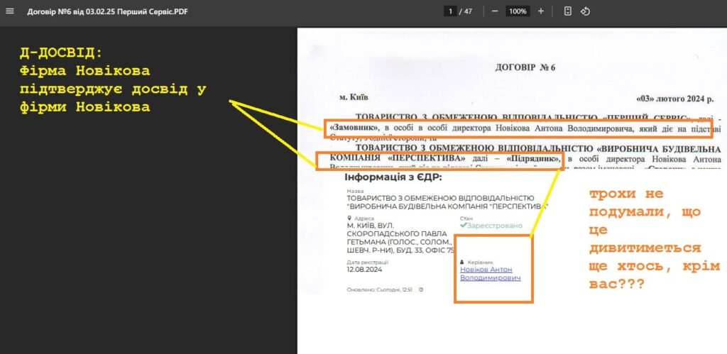 Хочете посміятись? В цій “султанській грамоті” написано, що “Перспектива” була підрядником з 3 лютого 2024 року… але вона існує з серпня 2024 року. Тобто в лютому Новікову допомагала його ще неіснуюча компанія. Новіков, і його уявні друзі))).