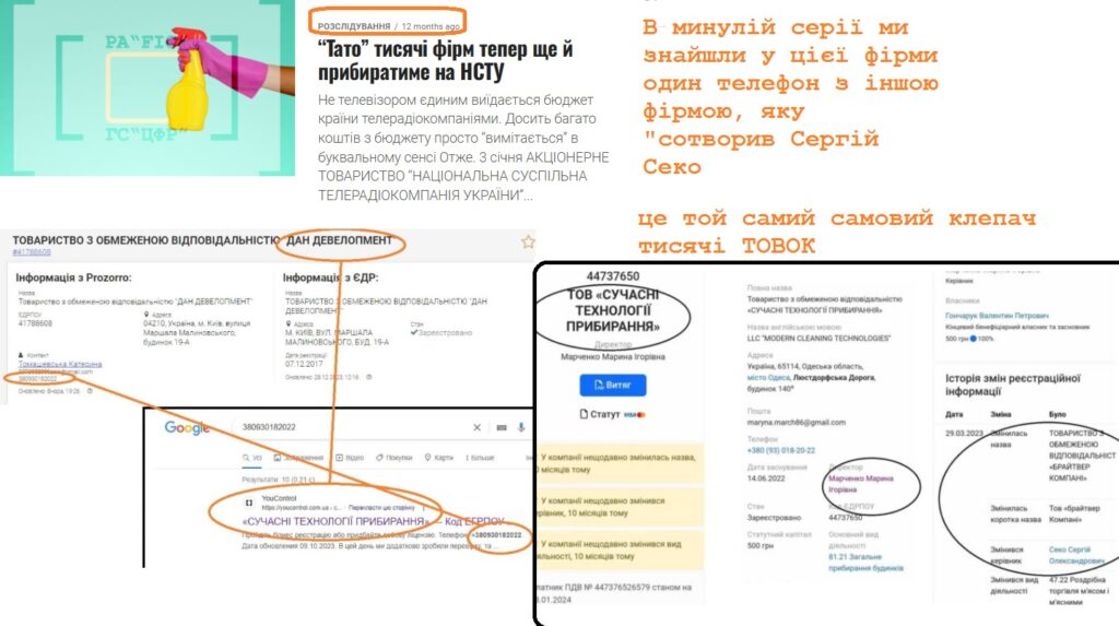 Не дивно зовсім, бо це стиль одного дуже добре відомого клепача ТОВок, який пов’язаний з Марченко. А про ТОВ “ДАН ДЕВЕЛОПМЕНТ” ми робили розслідування на початку року, коли “ДАН” зайшов на прибирання в НСТУ.