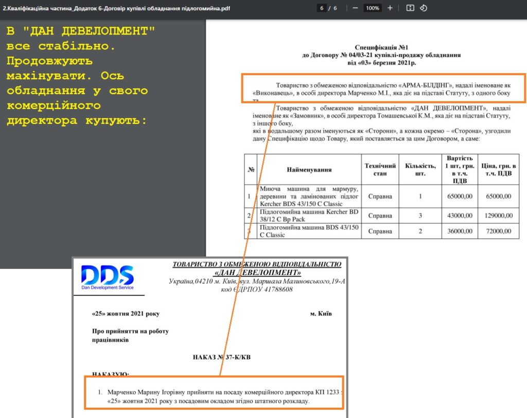 З нового, що ми дізнались про компанію, завдяки цій закупівлі, що їхня комерційна директорка, Марина Марченко, перед тим, як прийти до них в компанію, продала їм спеціальне обладнання у 2021 році зі своєї ТОВ “АРМА-БІЛД”. А потім, так співпало, що й сама перейшла в “ДАН”, лишивши попередню ТОВку з податковим боргом. ТОВка, до речі, навіть назву змінила.