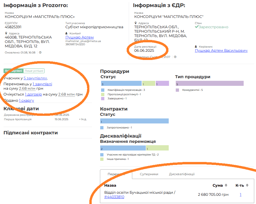 Консорціум створений 6 червня 2025 року ТОВом “АВТОМАГІСТРАЛЬ-ЗАХІД” та ТОВом “БК “ВАЛК”. Має один договір на 2 мільйони гривень. Фіксує одного працівника.