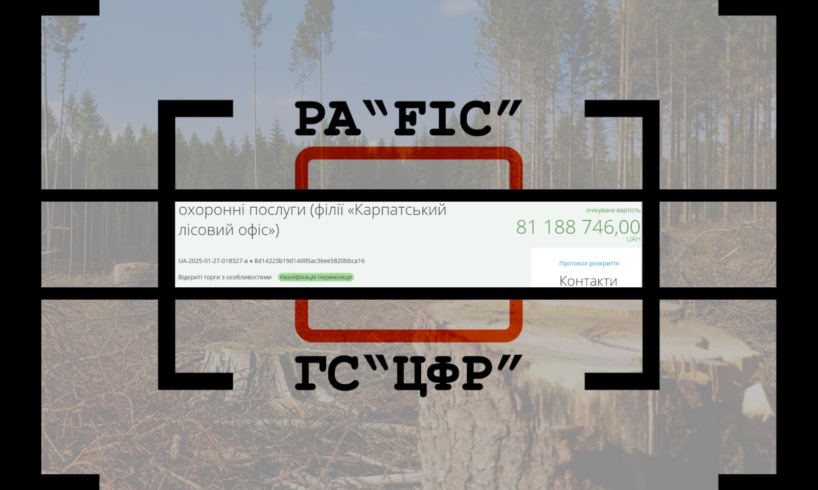 5 лютого ДЕРЖАВНЕ СПЕЦІАЛІЗОВАНЕ ГОСПОДАРСЬКЕ ПІДПРИЄМСТВО “ЛІСИ УКРАЇНИ” провело закупівлю на охоронні послуги (філії “Карпатський лісовий офіс”). Очікувана вартість закупівлі склала 81 188 746 гривень.