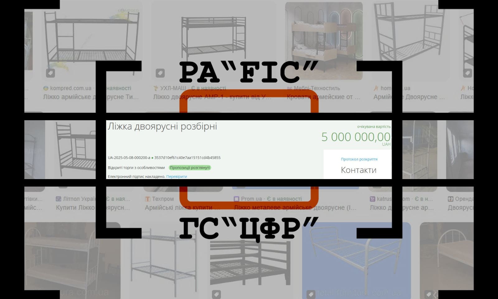 17 травня Квартирно-експлуатаційний відділ м. Чернігів провів закупівлю на ліжка двоярусні розбірні. Очікувана вартість 1150 комплектів склала 5 000 000 гривень.