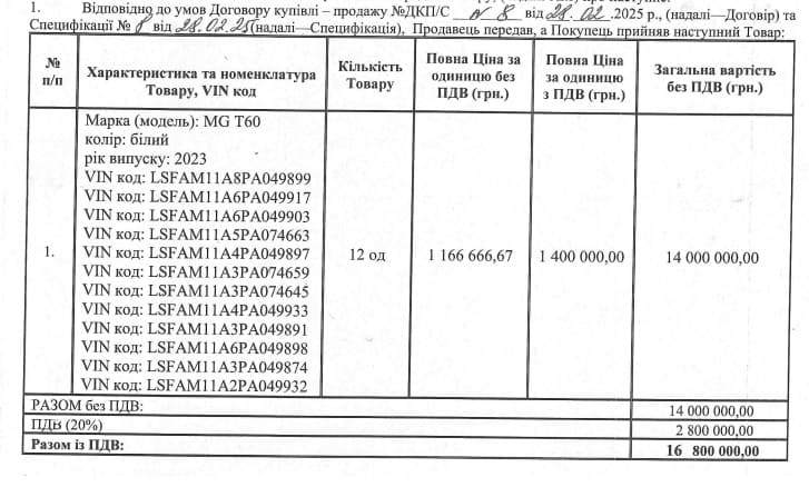 Вартість закупівлі склала 16 800 000 гривень. Контракт підписали з ТОВ “МОТОР ДЕВЕЛОПМЕНТ ГРУП”.