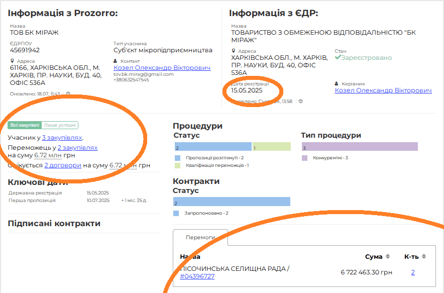 ТОВ зареєстрований у травні 2025 року. Має ще дві перемоги на тогах Пісочинської селищної ради.